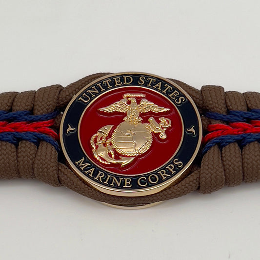 US Marine Corps bracelet | Gold EGA | Coyote Brown, Navy Blue & Red