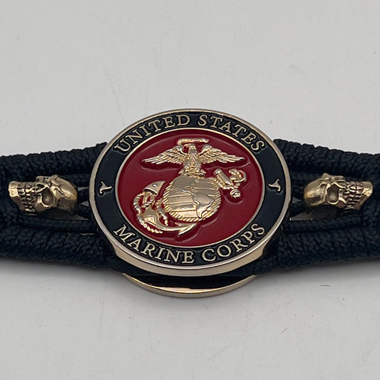 USMC bracelet | Gold EGA | Gold Skulls | Black | Thin | Flexible