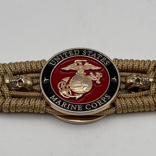 USMC bracelet | Gold EGA | Gold Skulls | Tan Weave | Thin | Flexible