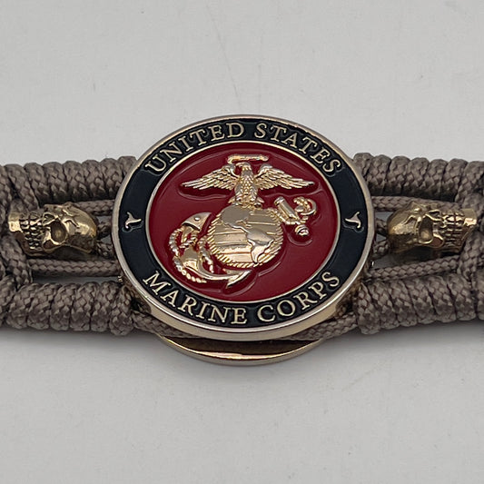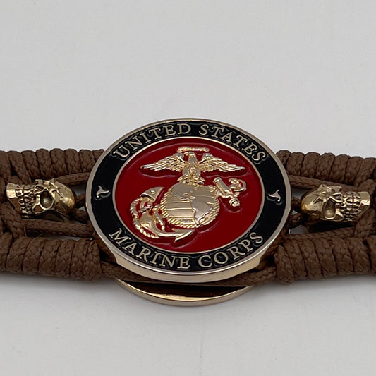 USMC bracelet | Gold EGA | Gold Skulls | Coyote Brown | Thin | Flexible