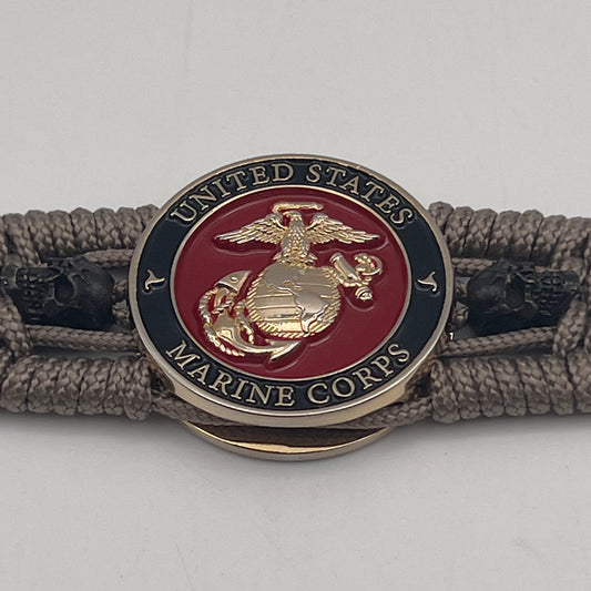 USMC bracelet | Gold EGA | Black Skulls | Tan Weave | Thin | Flexible