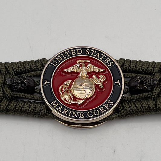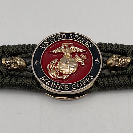 USMC bracelet | Gold EGA | Black Skulls | Olive Drab | Thin | Flexible