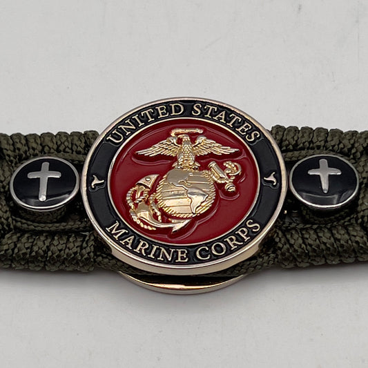 USMC bracelet | Gold EGA | Crosses | Olive Drab | Thin | Flexible