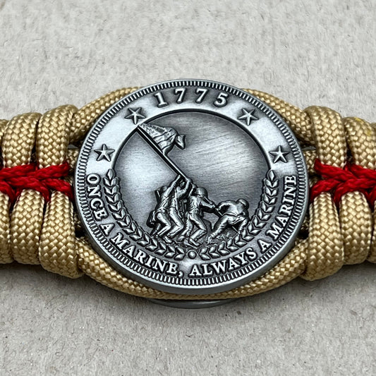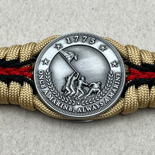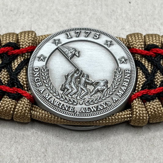 USMC Iwo Jima bracelet | Antique Silver | Tan, Black, Red