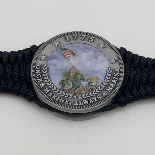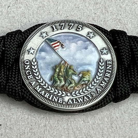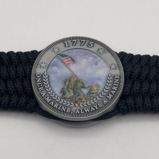 USMC Iwo Jima bracelet | UV Painted | Black | Thick | Narrow