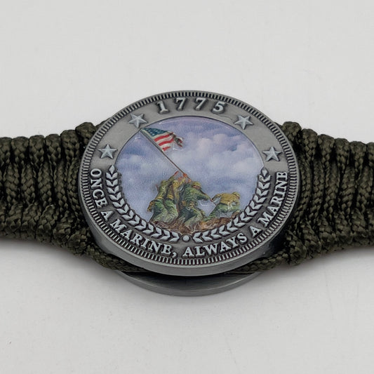 USMC Iwo Jima bracelet | UV Painted | Olive Drab | Thin | Narrow