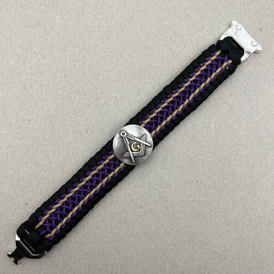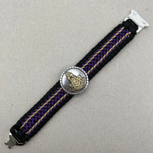Freemason Square & Compass bracelet-Black, Purple & Gold