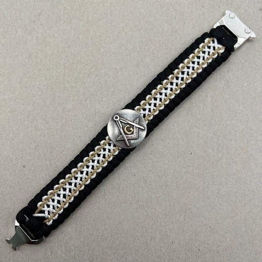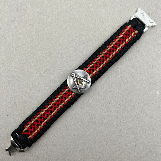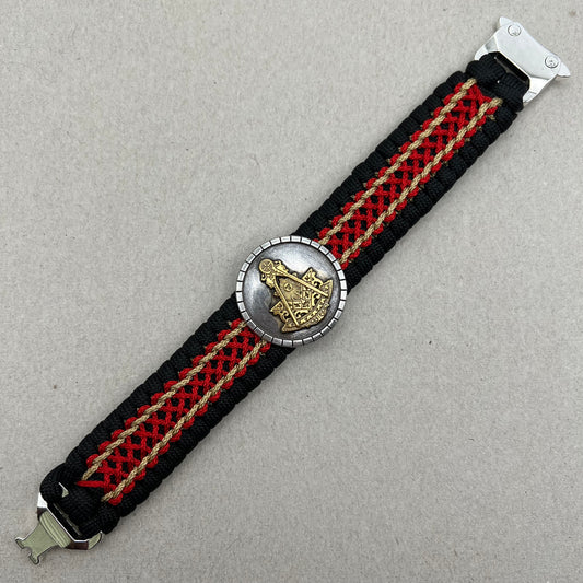 Freemason Square & Compass bracelet-Black, Red & Gold
