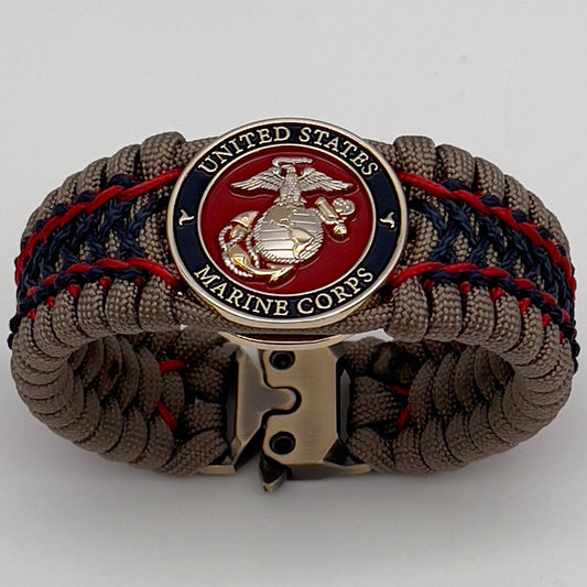 Marine Corps bracelet | Silver & Gold EGA | Tan, Navy Blue & Red