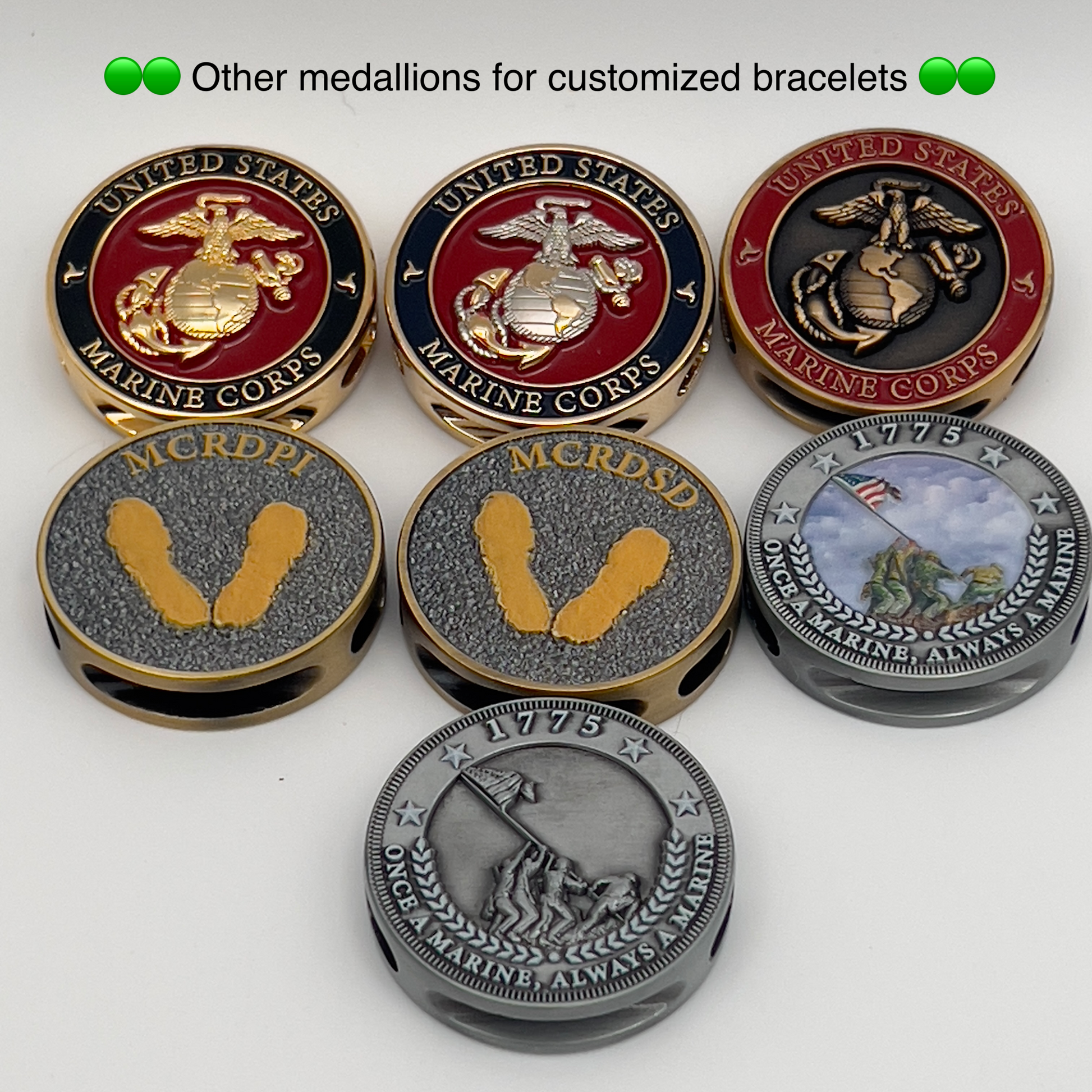 🟢 The cord is woven through the proprietary Marine Corps medallion which essentially makes this an indestructible bracelet